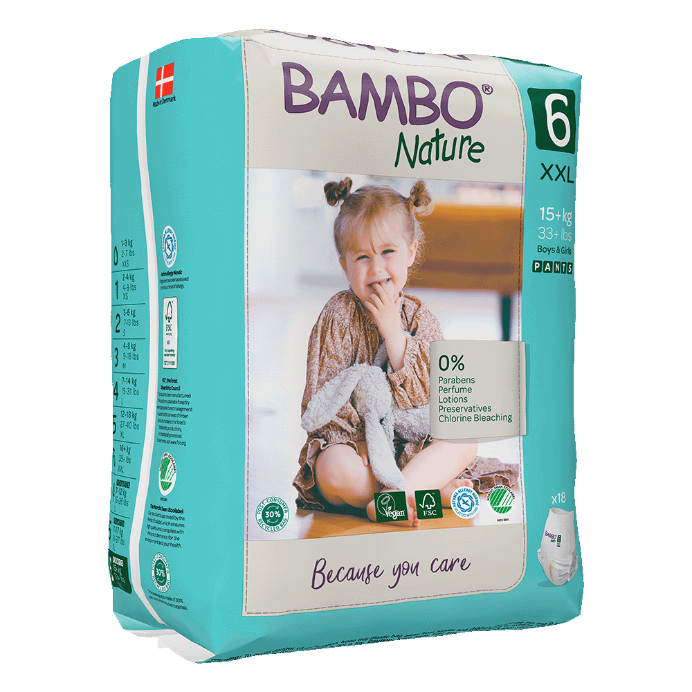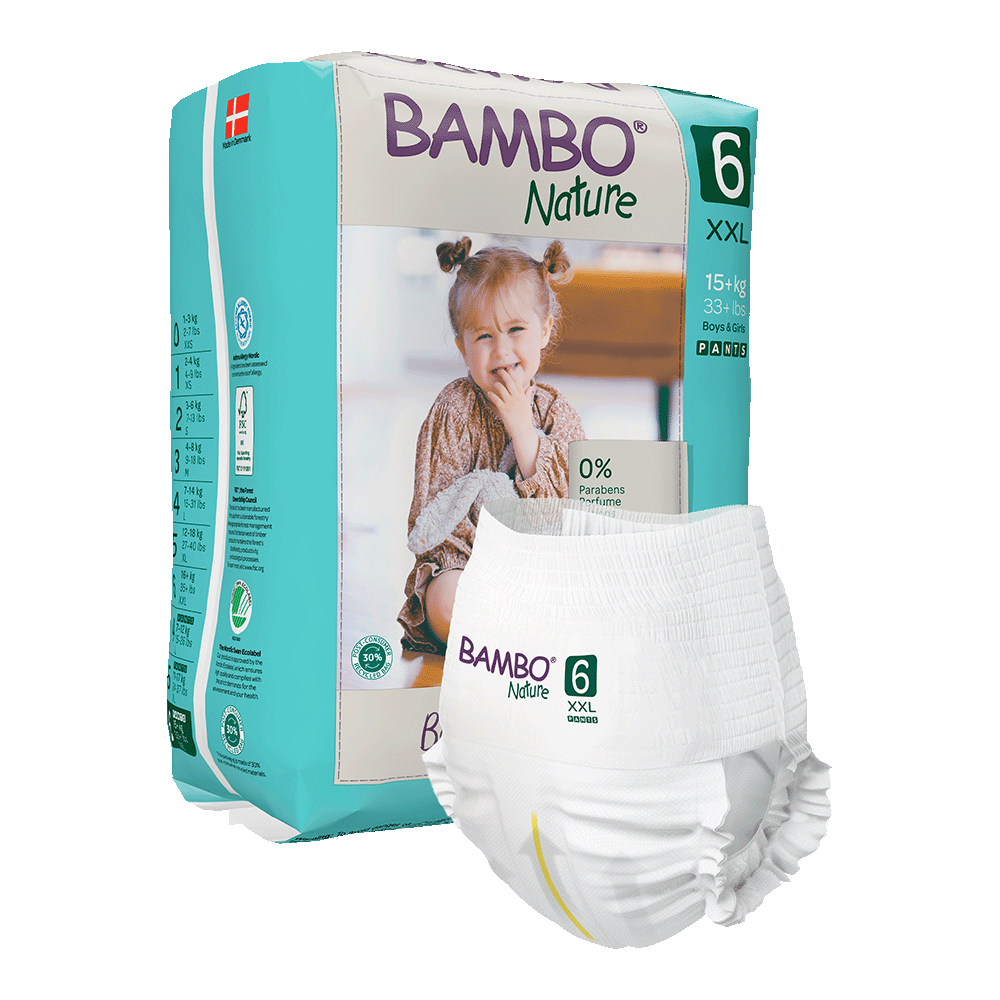 Hlačne pleničke Bambo Nature ne vsebujejo parfumov in parabenov, kar zmanjšuje tveganje za nastanek alergij in pleničnega izpuščaja.